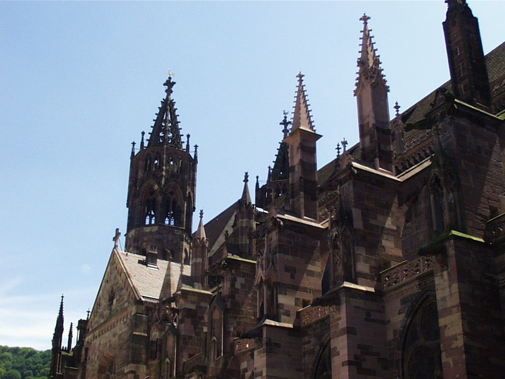 MünsterturmUnverkennbar und schon von weitem sichtbar thront das Freiburger Wahrzeichen über der Stadt. Der Bau der Kathedrale, die aus roten Sandstein besteht, begann um 1200 unter Herzog Bertold V. und wurde durch Spenden sowie dem Verkauf von Erz und Silber aus dem Schwarzwald ermöglicht. Die Kirche sollte zunächst als Prestige-Symbol zur Darstellung der Größe Freiburgs und dessen Reichtum dienen, aber auch als Grabmal für Bertold V.