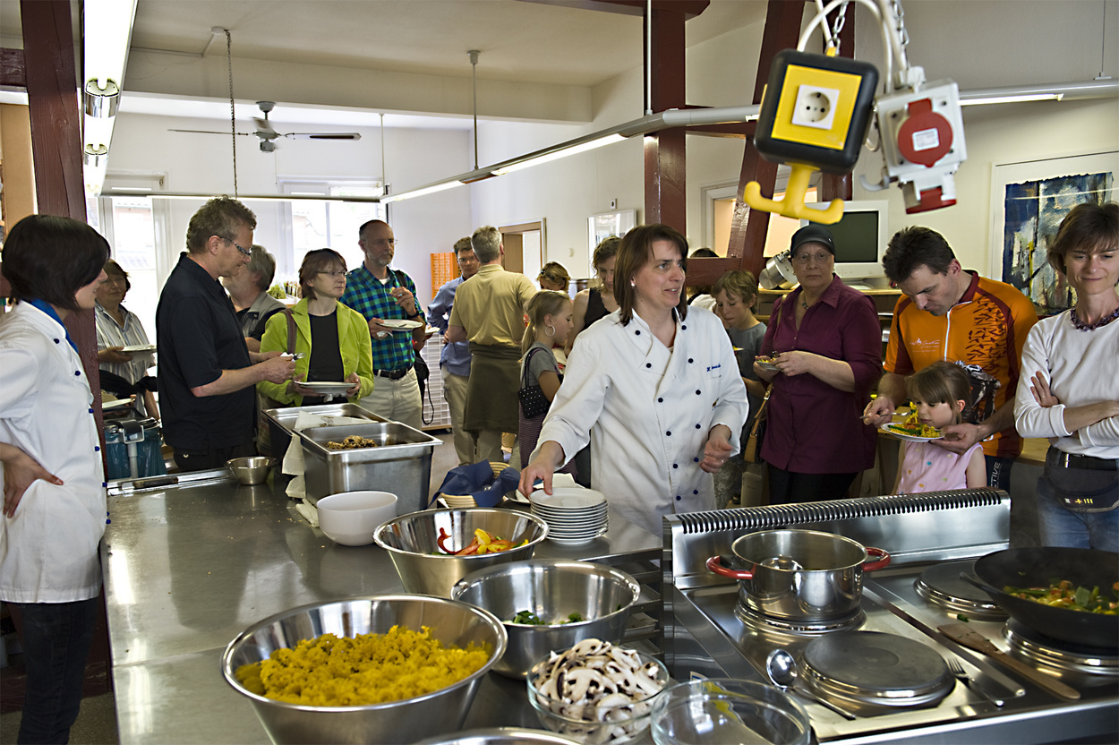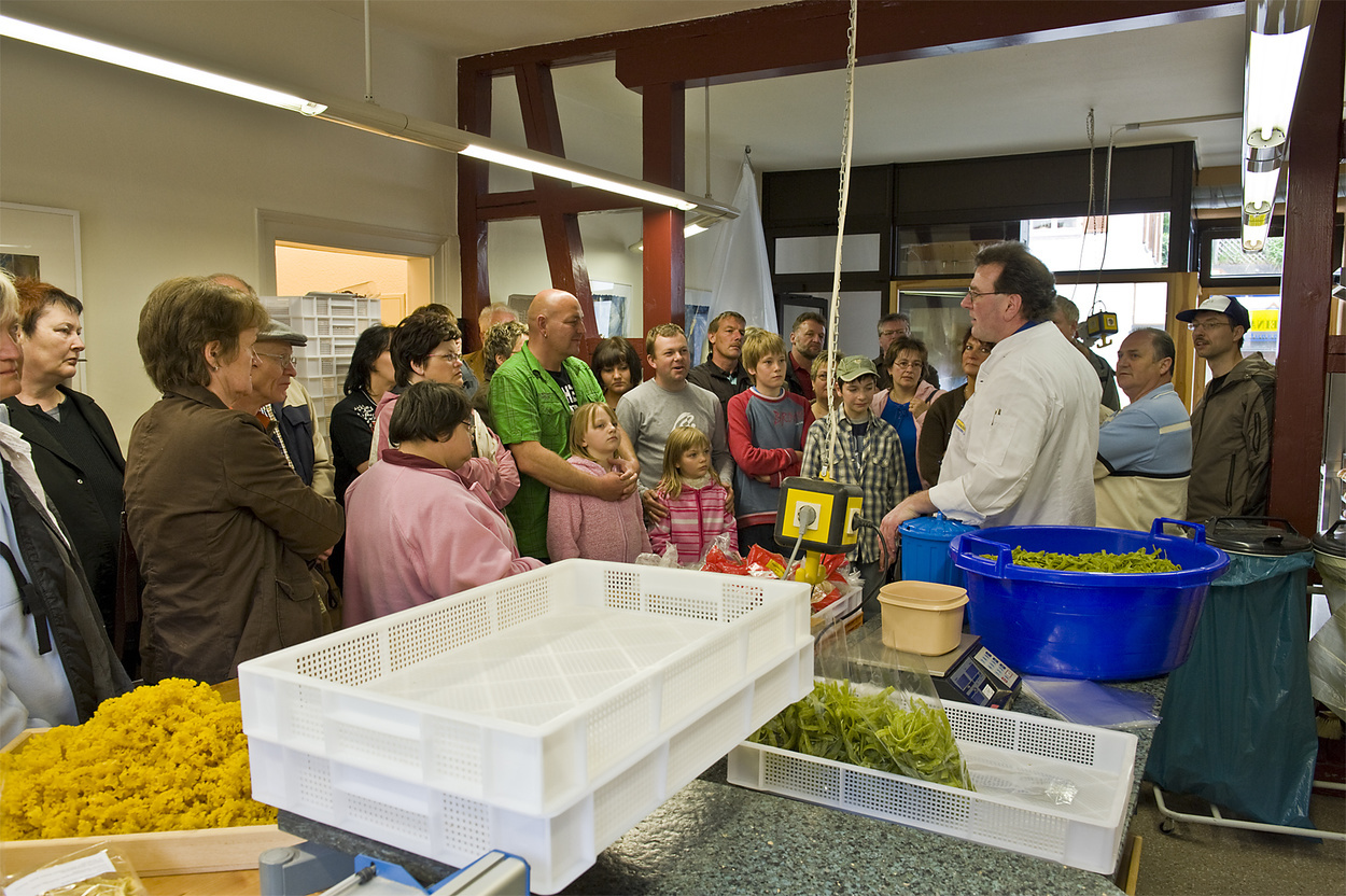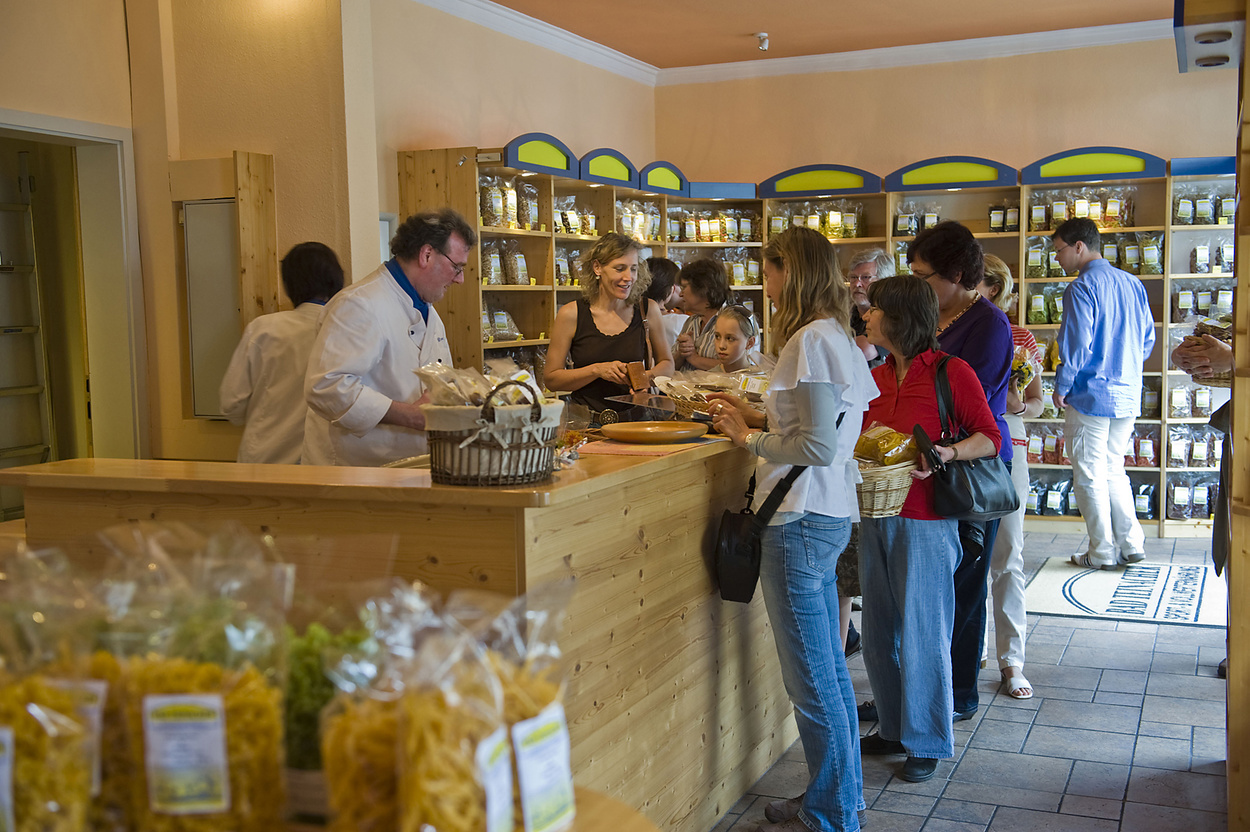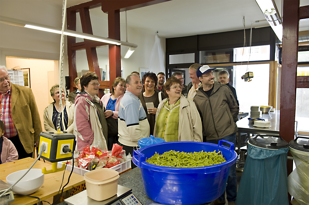 Chef und Mitarbeiterinnen lassen sich gerne, im Rahmen einer Betriebsbesichtigung - oder auch einfach mal so-, über die Schulter schauen. Dabei kann man vieles über die Herstellung von Nudeln lernen und diese sogar verkosten.